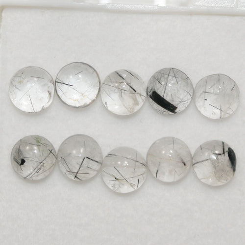 Lot de 14 cabochons ronds lisses en quartz rose de 7 mm. (14 pièces) -